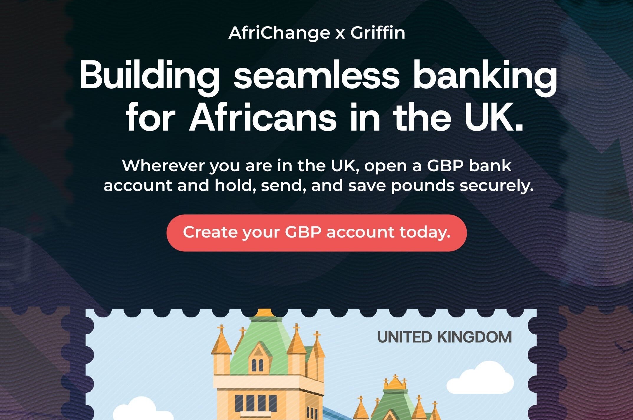 Africhange has partnered with Griffin to launch GBP bank accounts for African customers in the UK. The GBP accounts offer full banking functionality, including direct deposits and secure GBP balances.